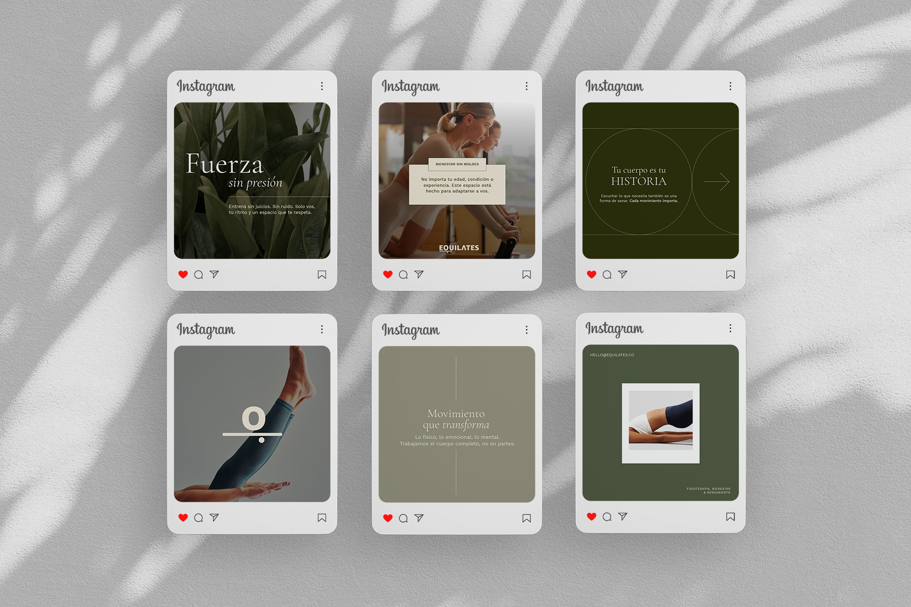 EQUILATES is a wellness studio based in Copacabana, Colombia, integrating pilates, physiotherapy, and performance training in a calm, personalized space. Rooted in the belief that wellness should be accessible and human-centered, the brand required a system that balances professionalism with emotional depth.